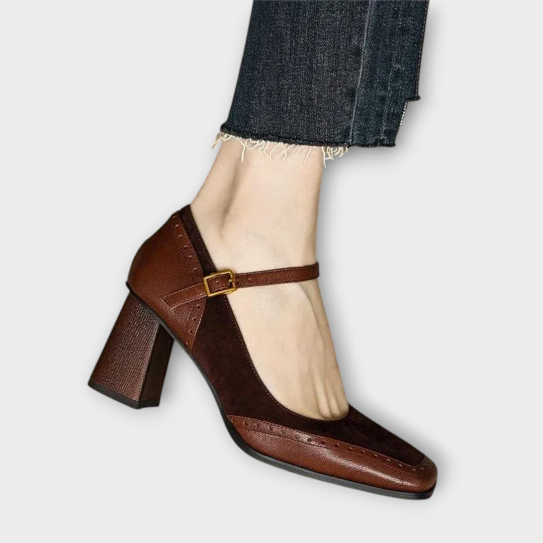 נעלי פאמפ קלאסיות עם עקב בלוק ורצועת קרסול