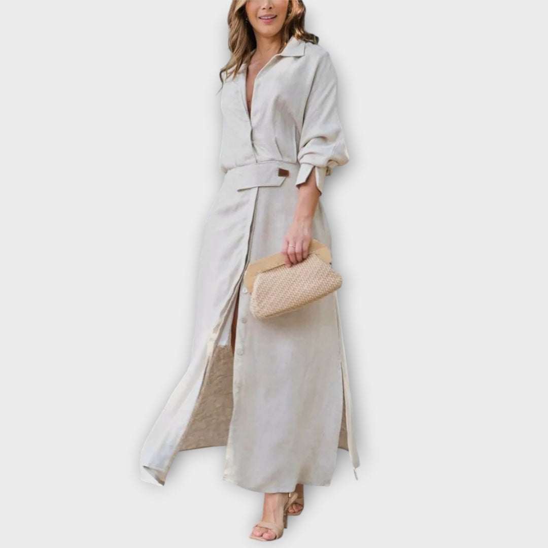 שמלת מקסי קיץ אלגנטית עם צווארון V