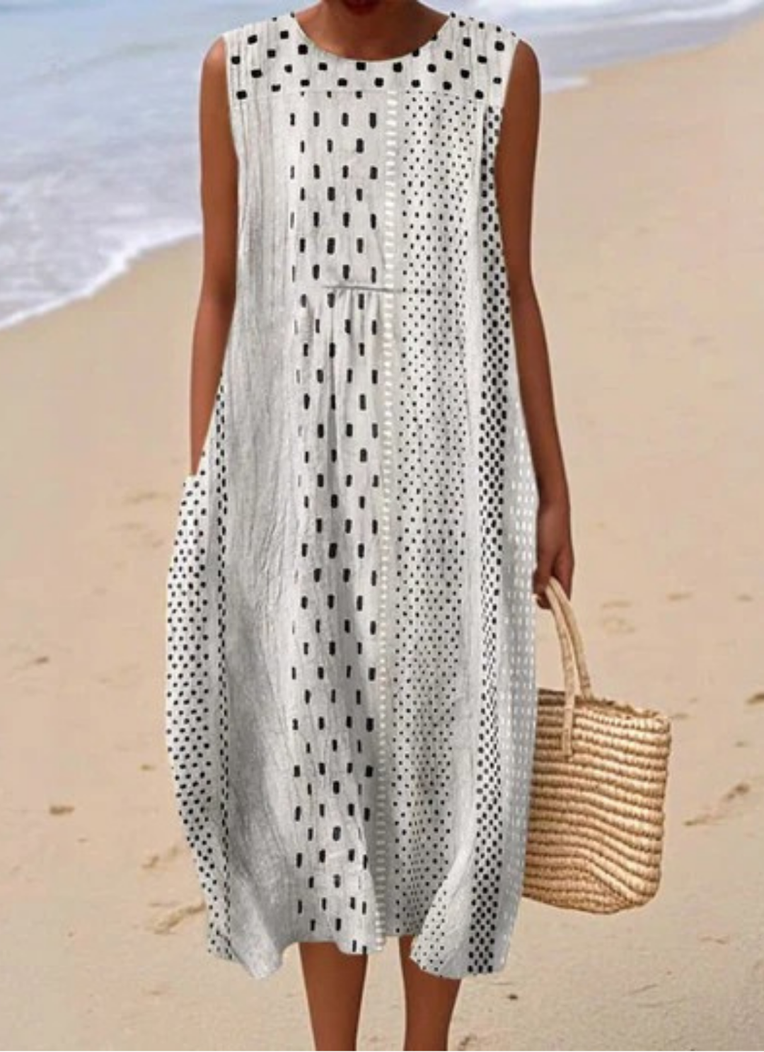 שמלת נקודות מונוכרומטית קלילה ללא שרוולים