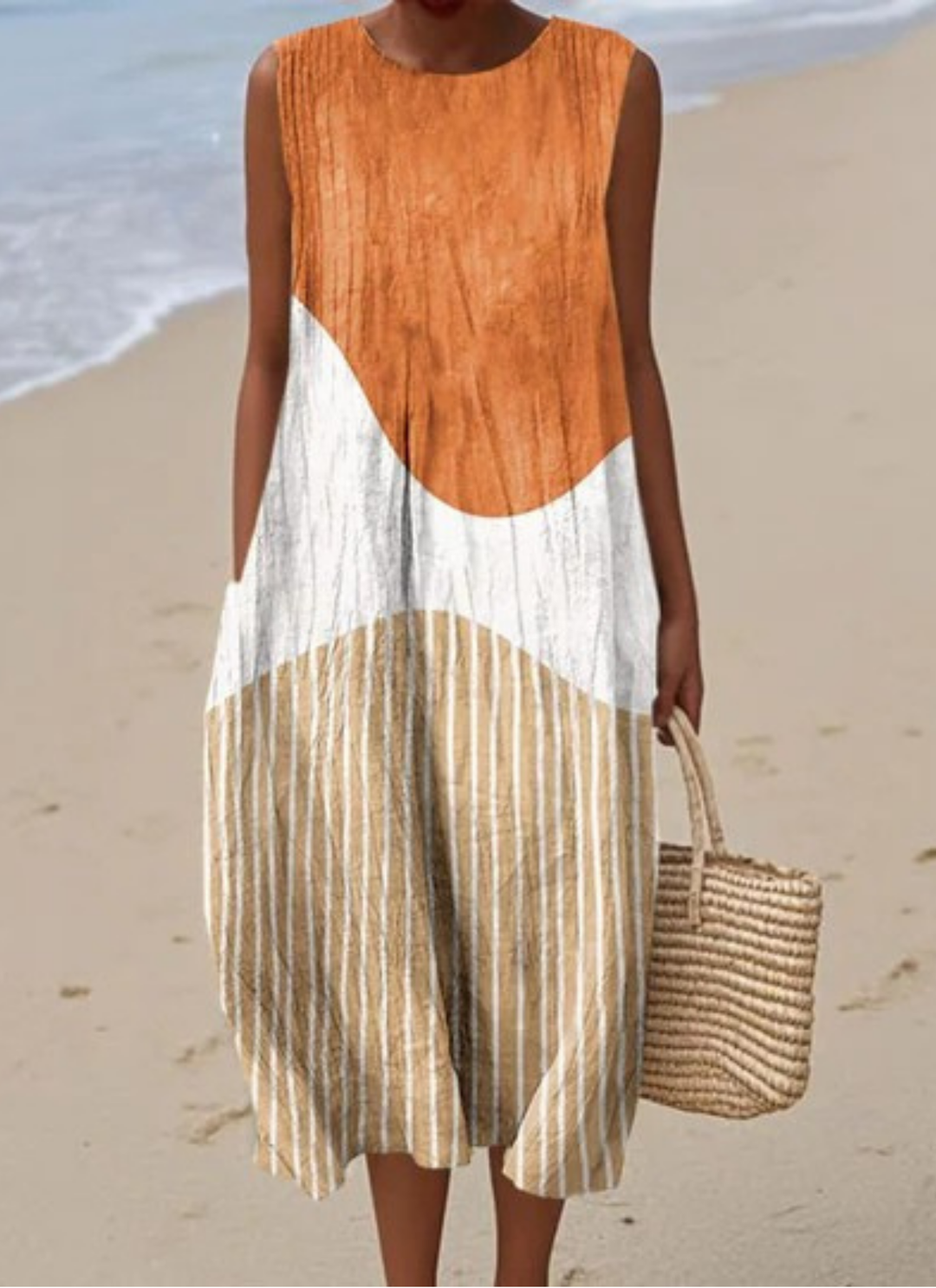 שמלת סטרייפ ארוכה ללא שרוולים בעיצוב אלגנטי