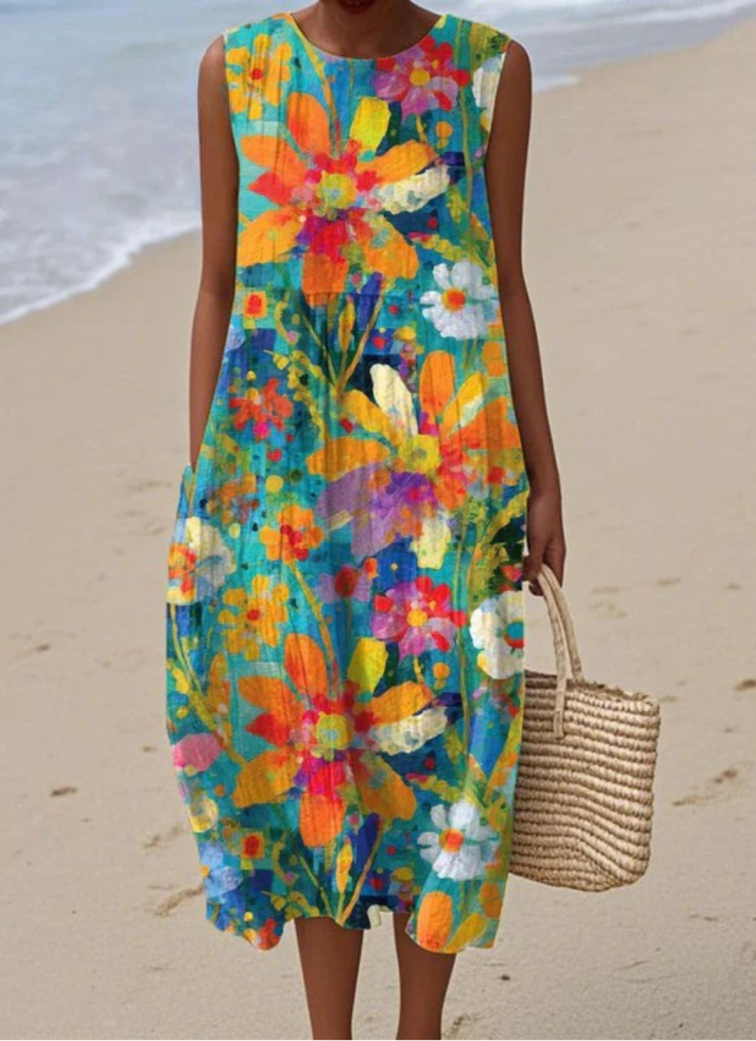 שמלת סולן פרחונית ללא שרוולים בצבעים נועזים