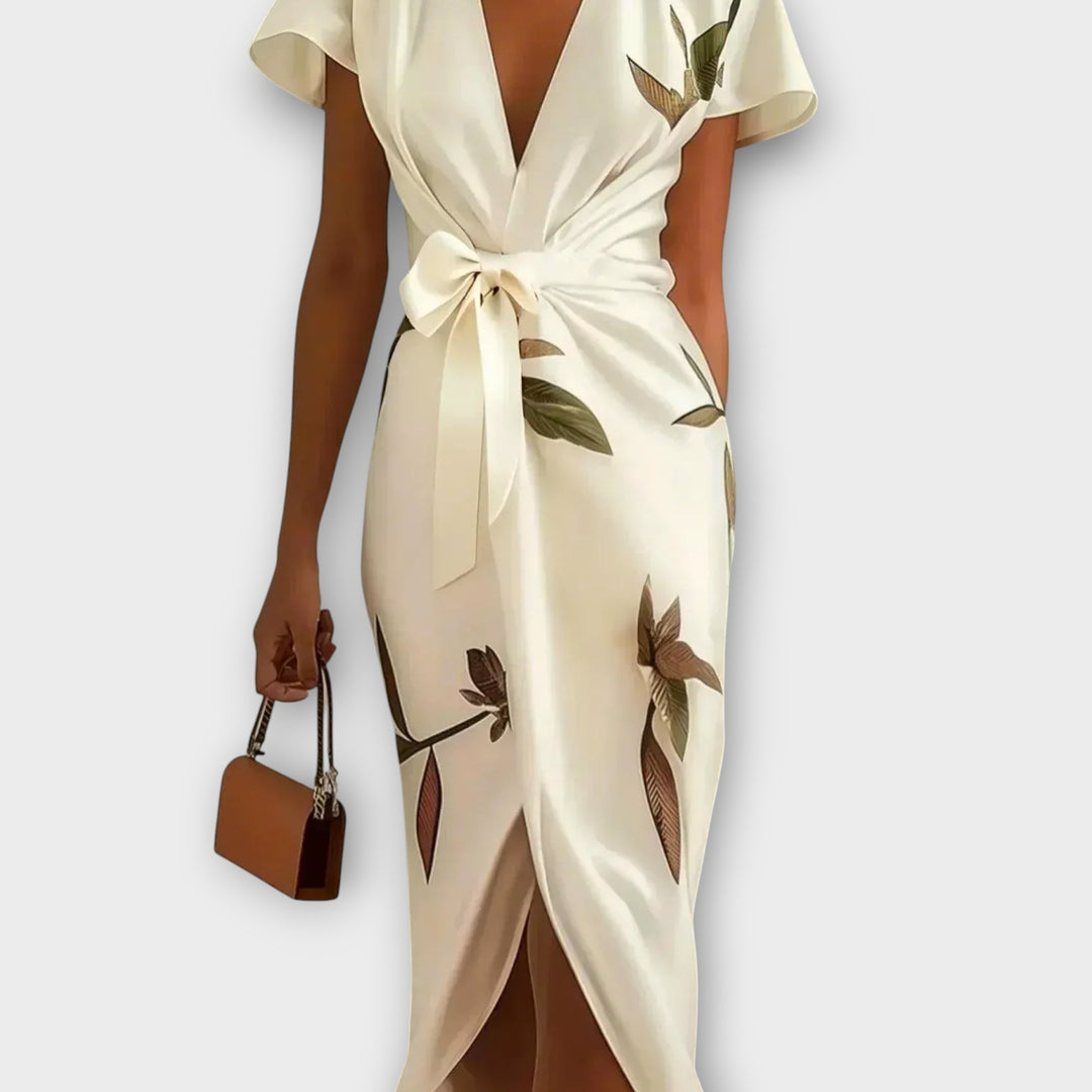 שמלת עטיפה אלגנטית עם הדפס עלים