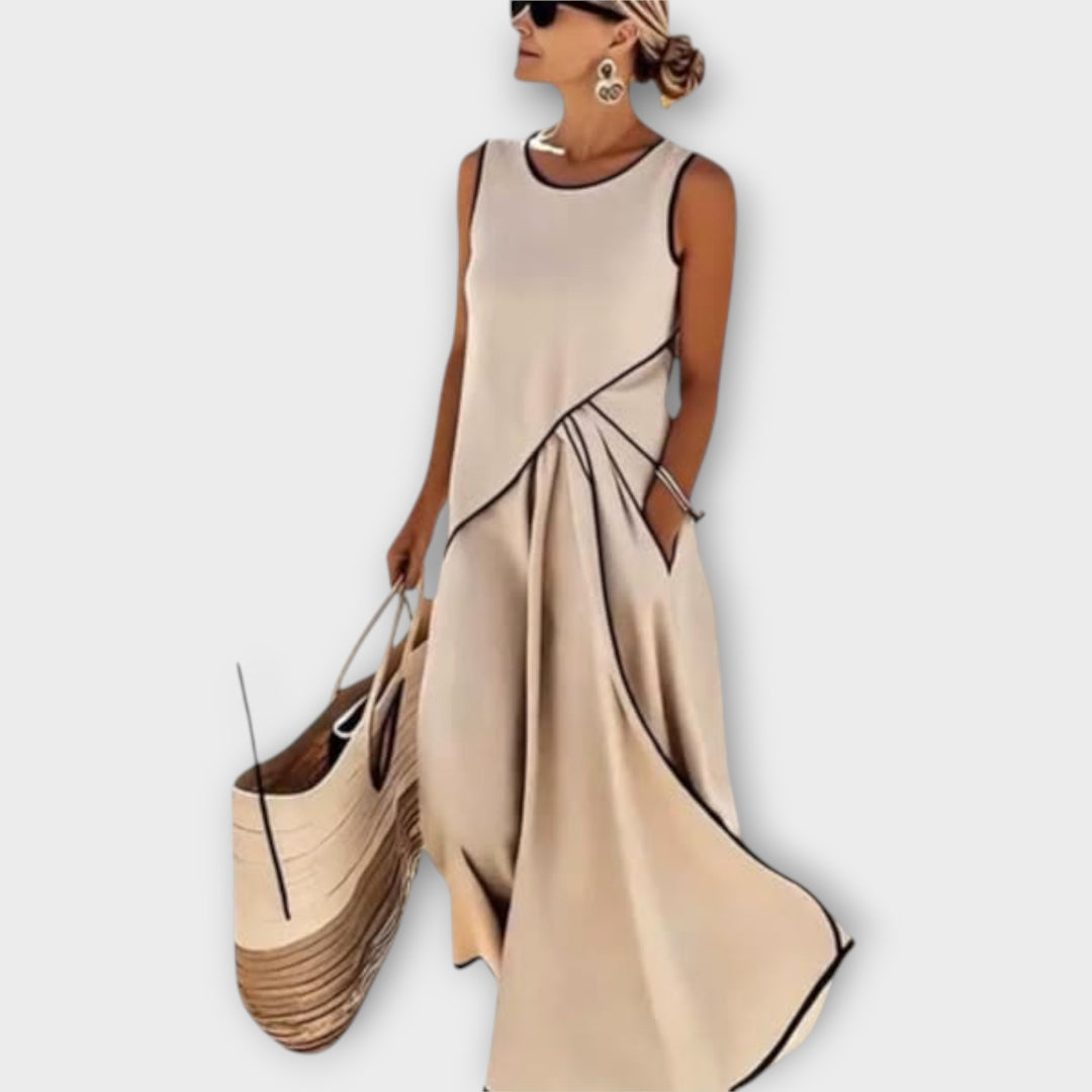 שמלת קז'ואל נושמת עם צווארון V ללא שרוולים