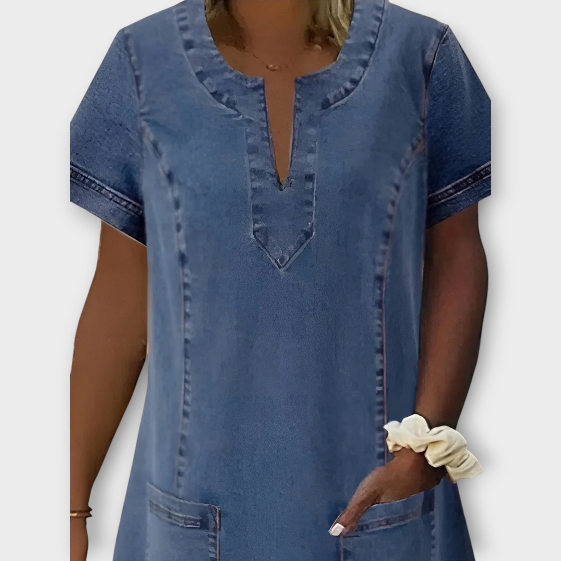 שמלת ג'ינס קז'ואל עם כיסים צדדיים