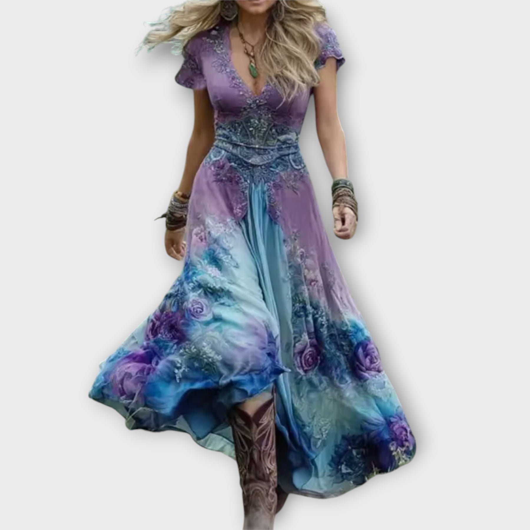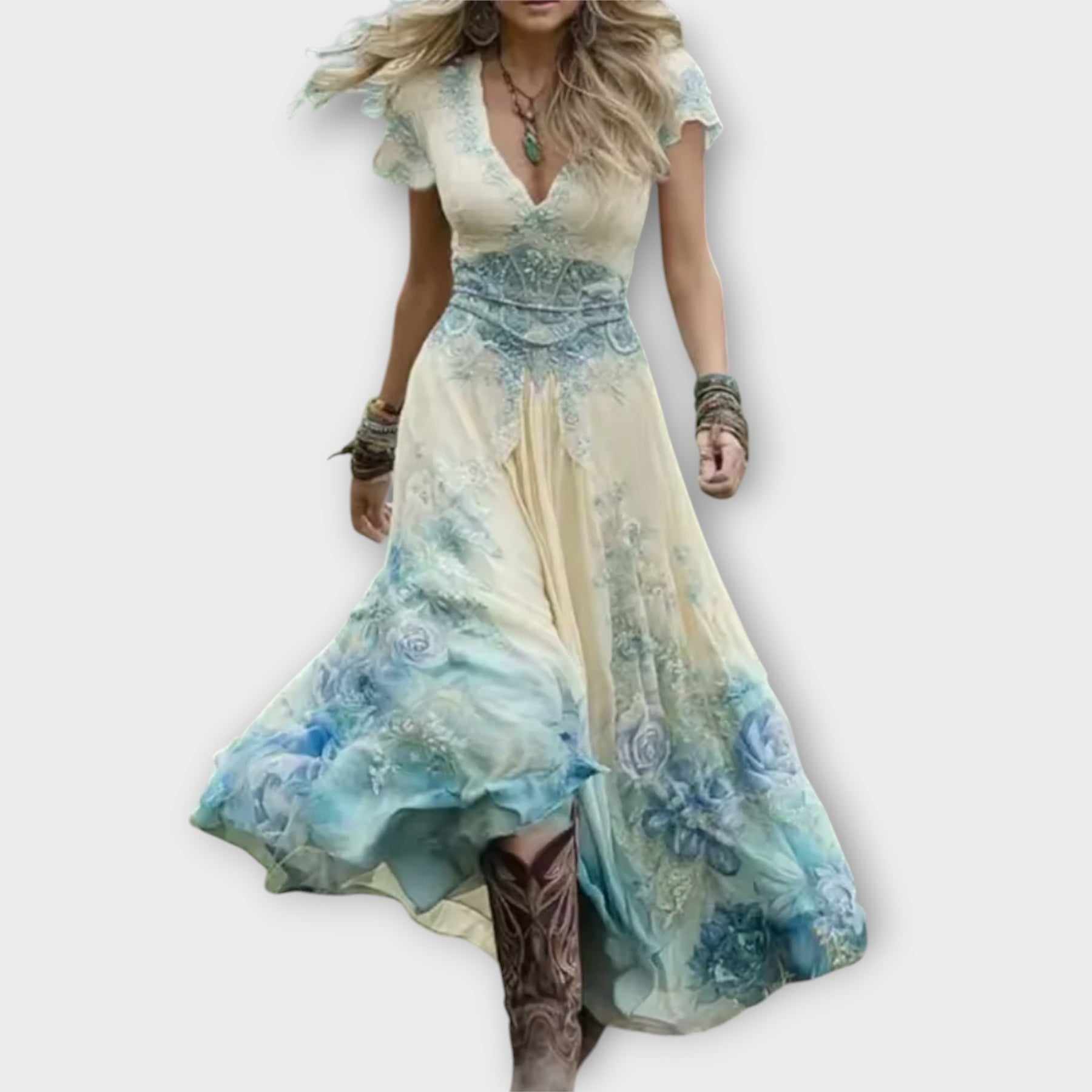 שמלת צלסטין אלגנטית עם רקמות פרחוניות