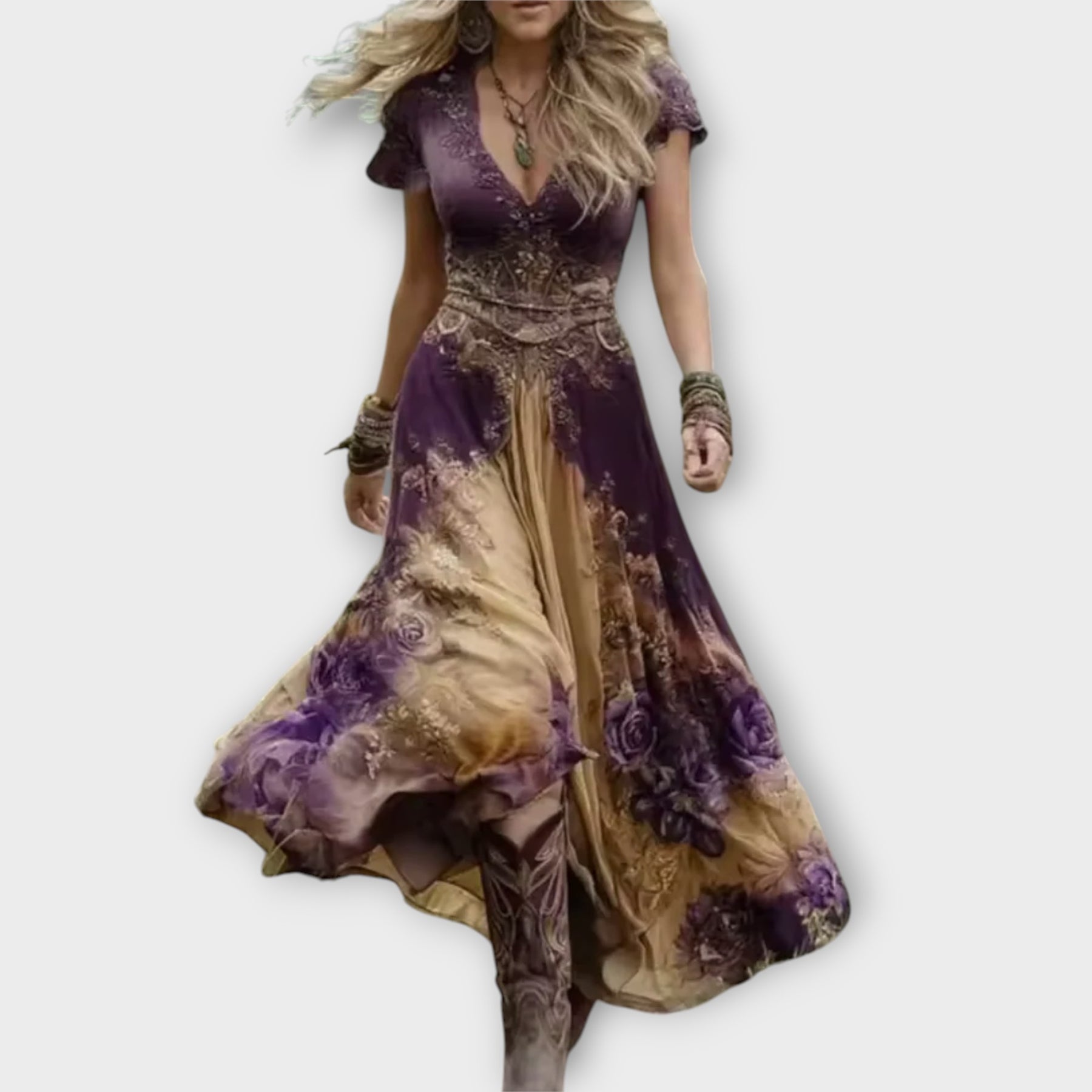 רקמה מורכבת – פרטים פרחוניים עדינים מוסיפים עומק, אומנות ונשיות לכל צעד.
