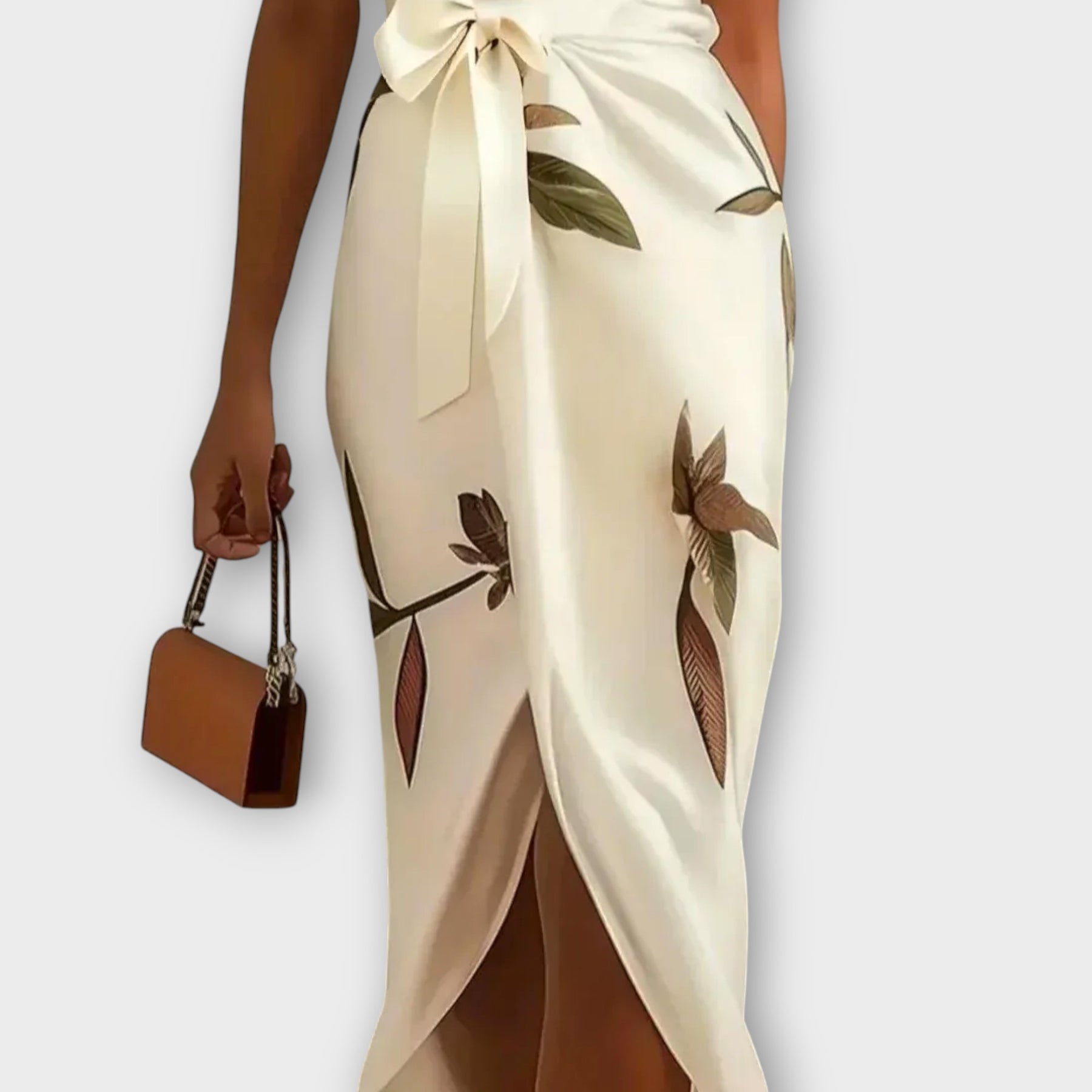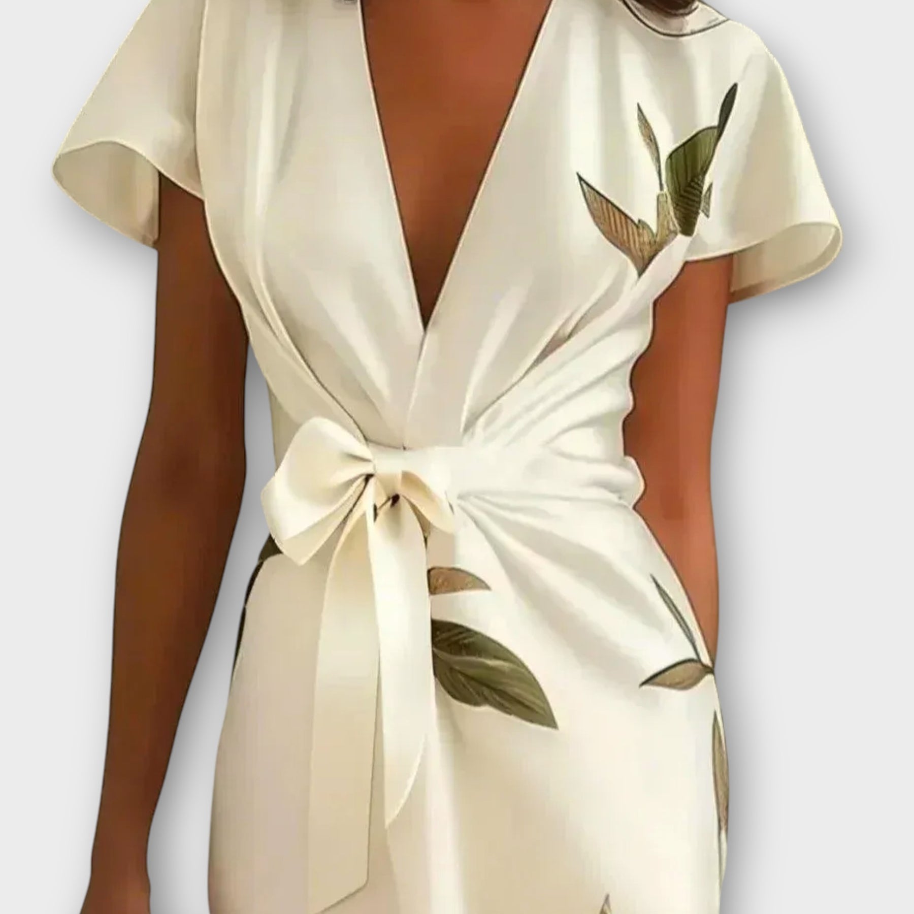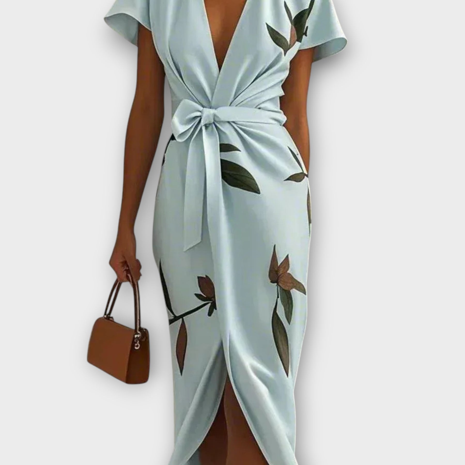 שמלת עטיפה אלגנטית עם הדפס עלים