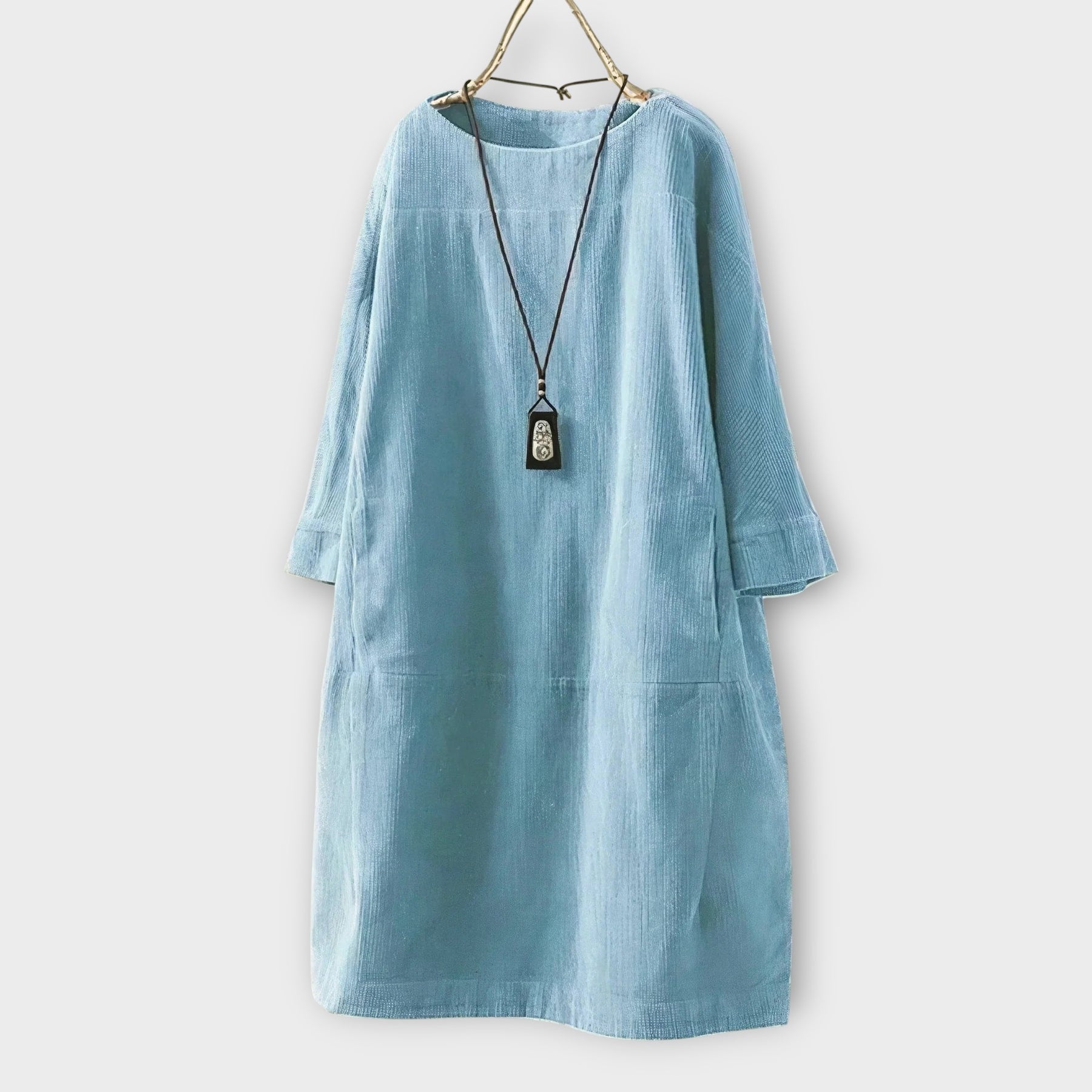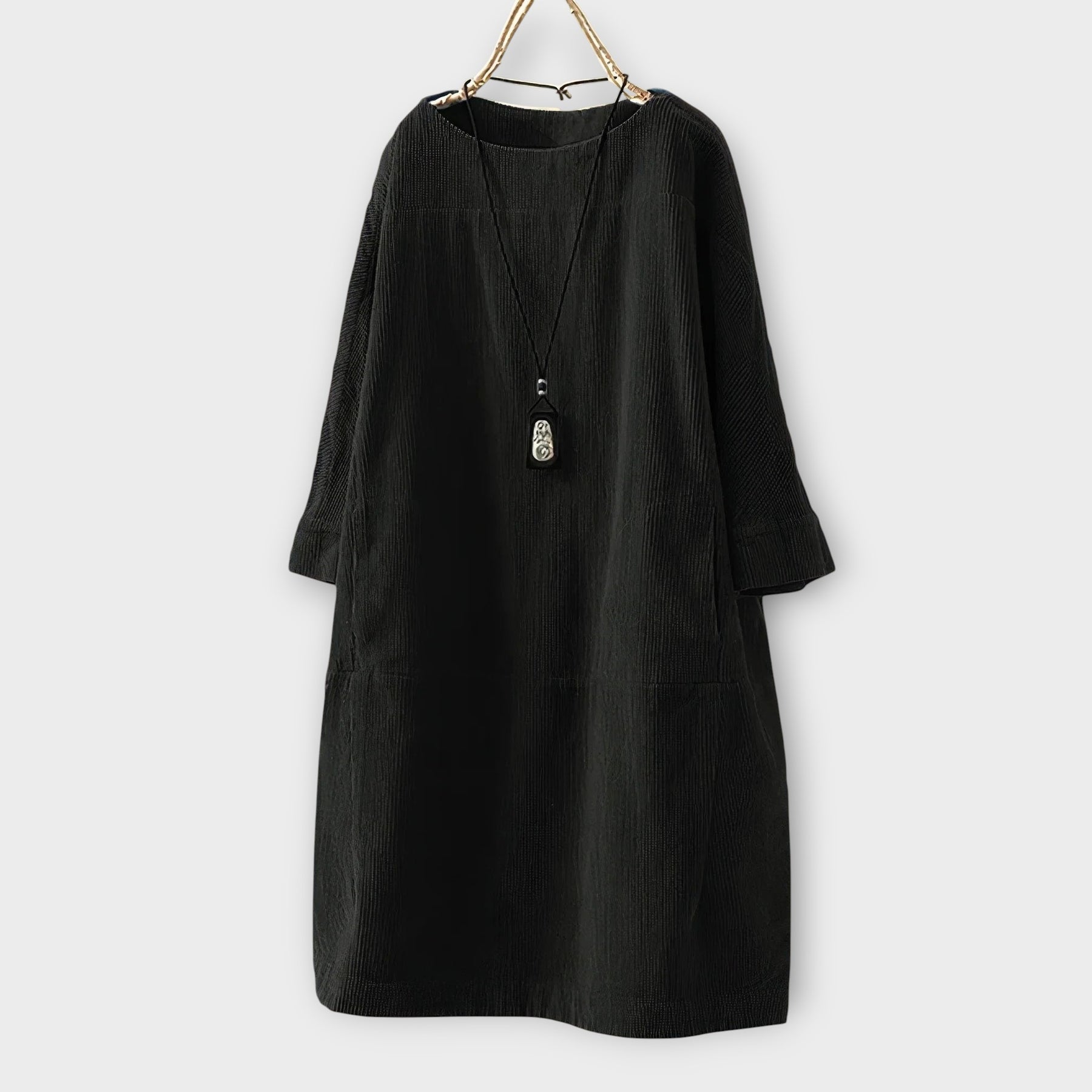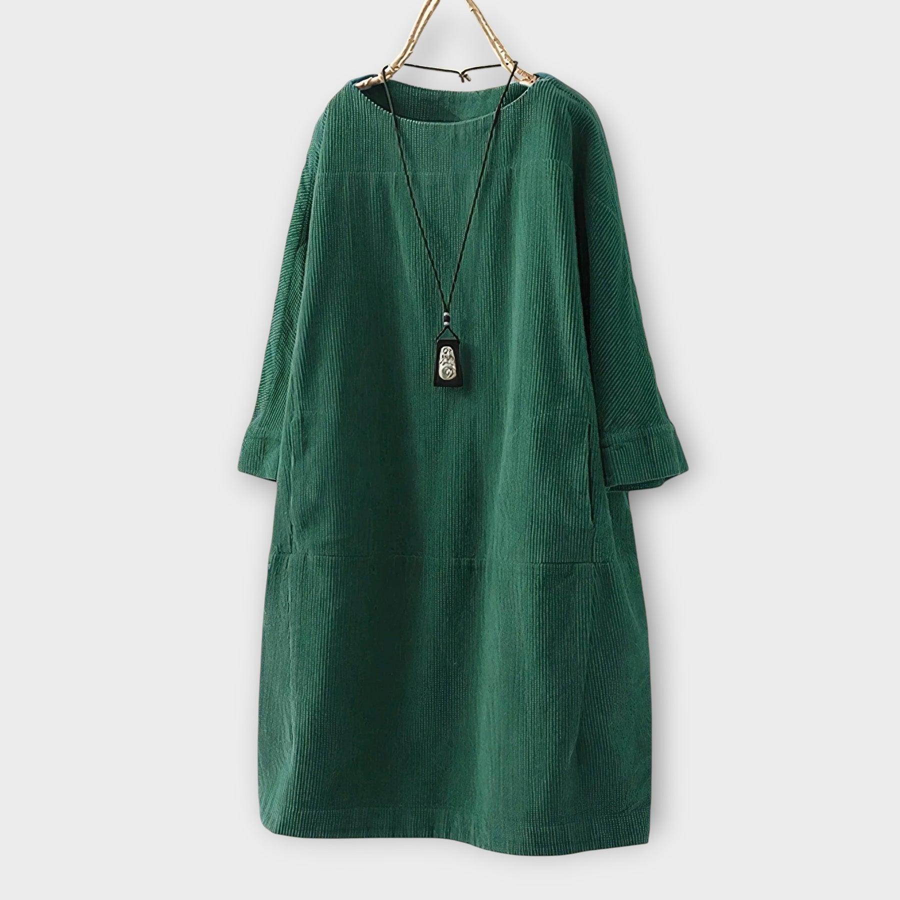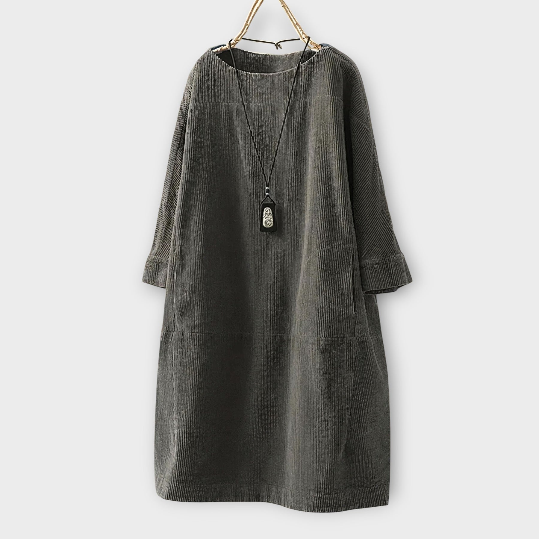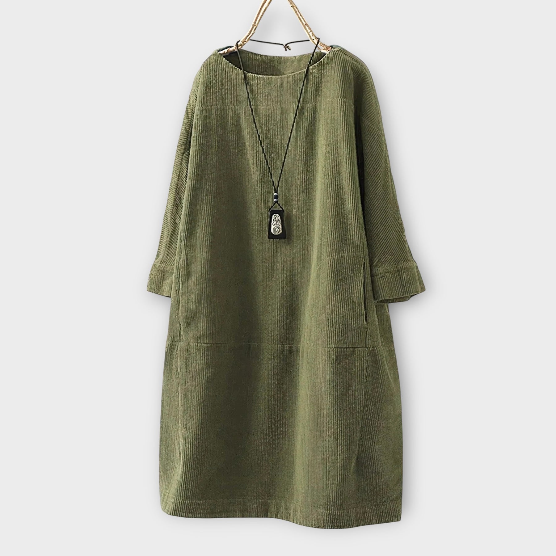 שמלת טוניקה קורדרוי רפויה עם קסם אלגנטי
