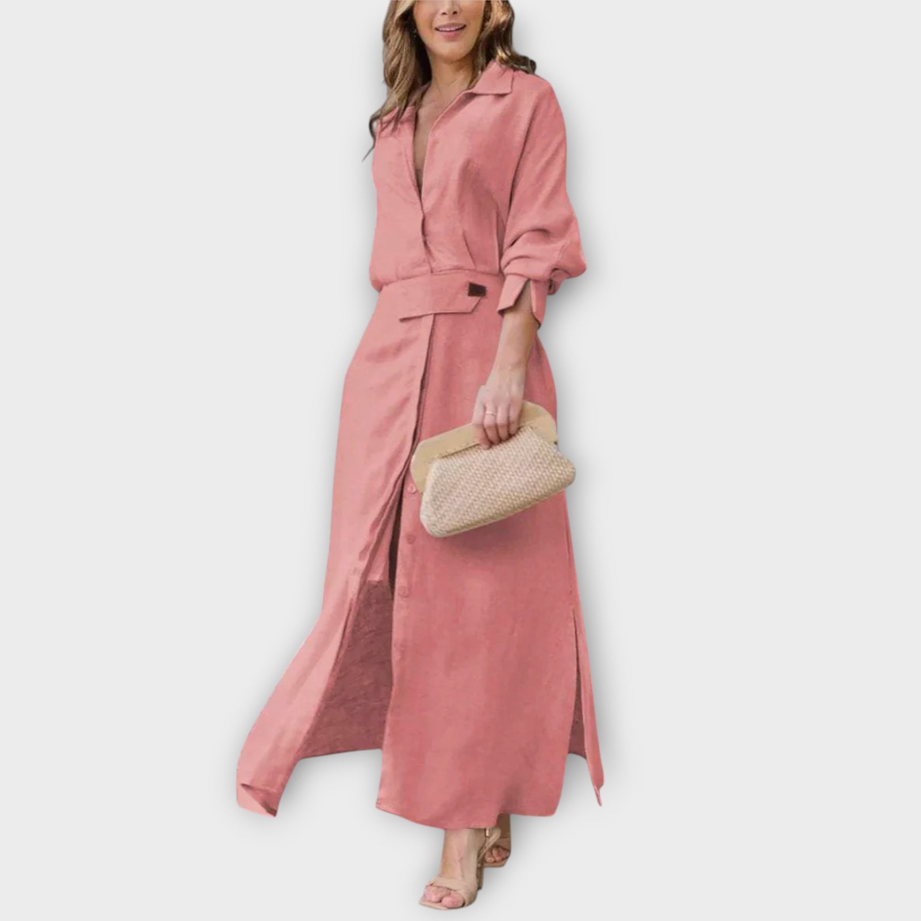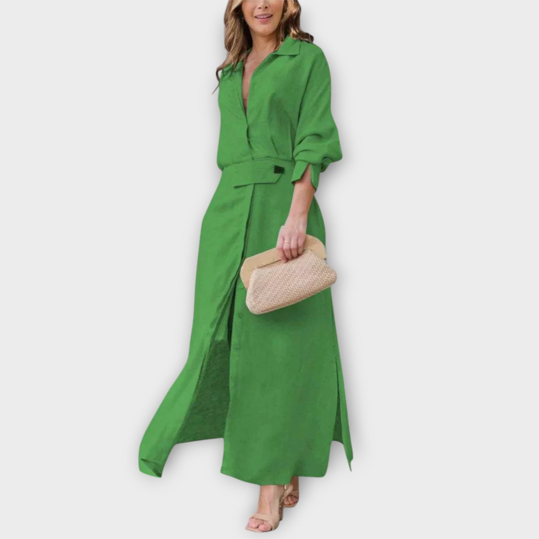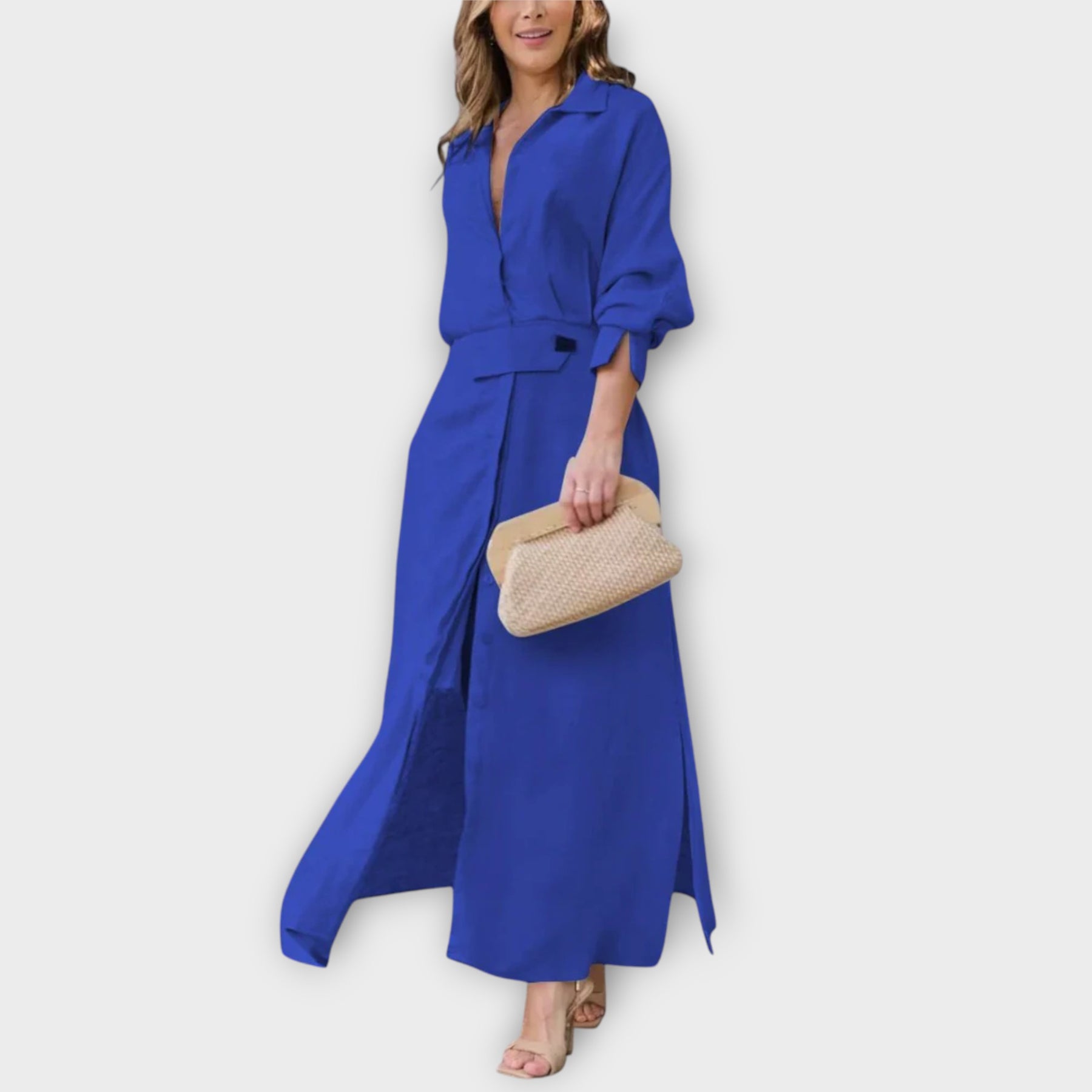 שמלת מקסי קיץ אלגנטית עם צווארון V